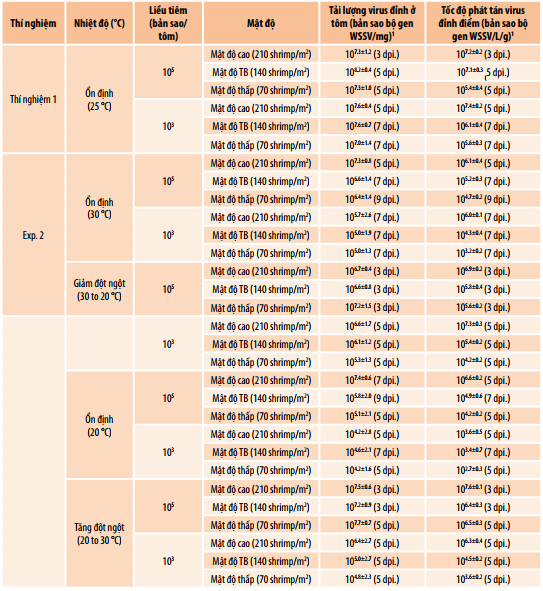 1Bản sao virus của tôm và tỷ lệ phát tán được trình bày dưới dạng trung bình ± độ lệch chuẩn (SD)